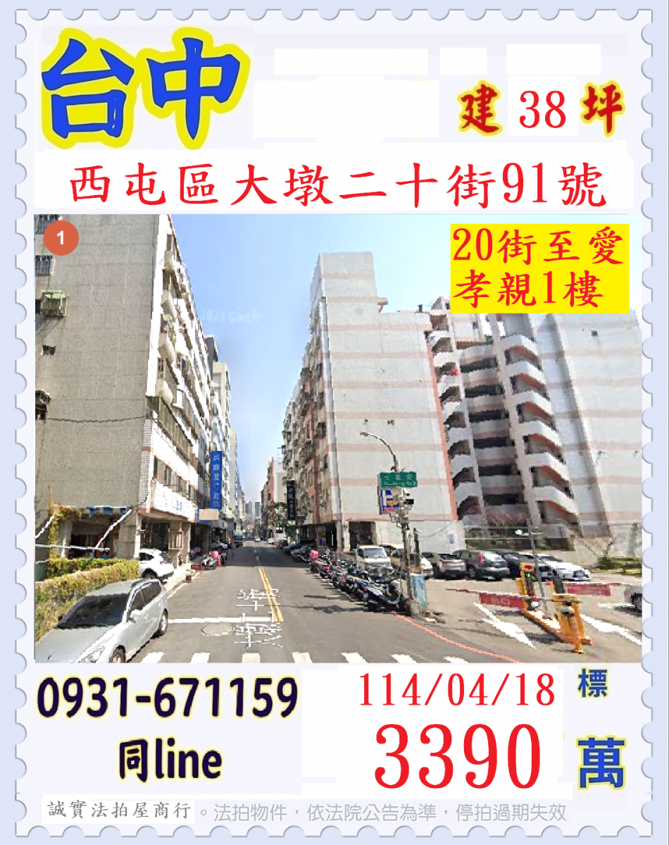 張經理推薦/台中市西屯區大墩二十街至愛孝親一樓