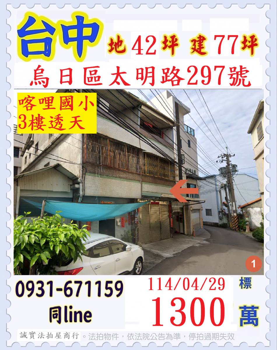 張經理推薦/台中烏日區太明路42大地坪透天