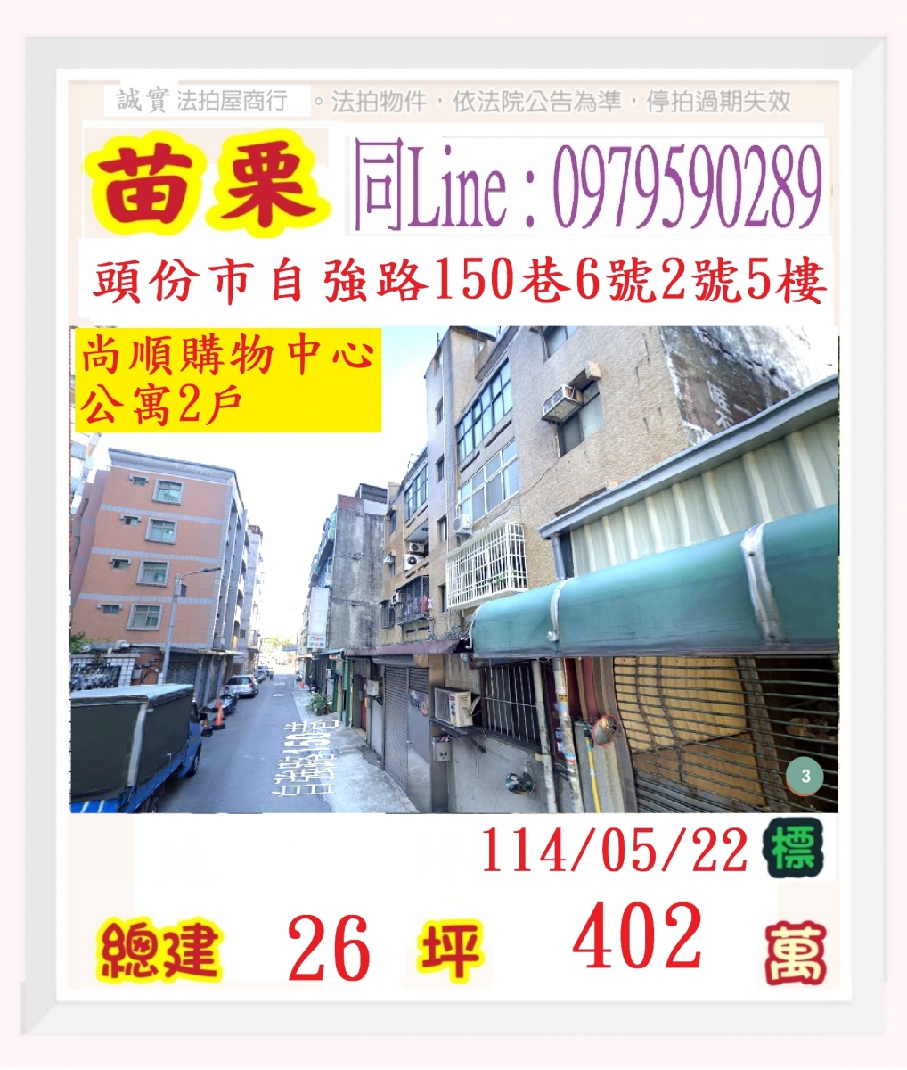 9/2應買截止苗栗縣頭份市東庄里23鄰自強路150巷2號五樓