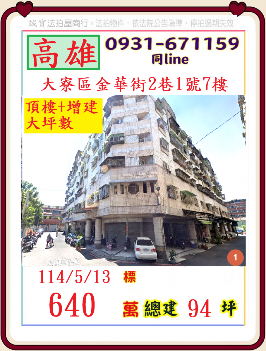 張經理推薦/高雄市大寮區金華街(頂樓+增建大坪數電梯美廈))