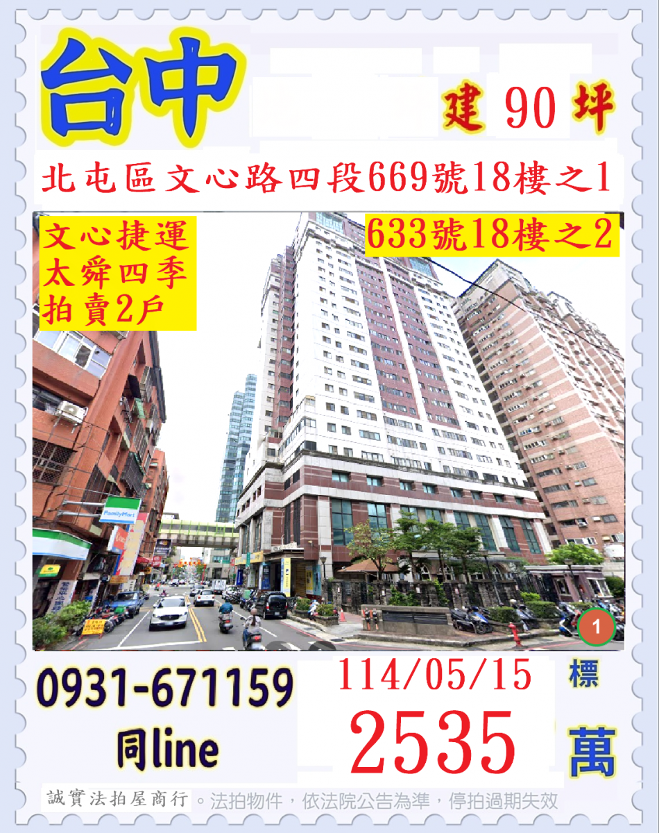 張經理推薦/台中市北屯區文心路四段(文心捷太舜四季視野戶))