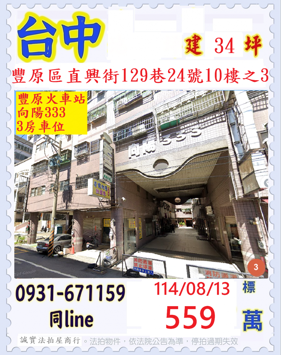 張經理推薦/台中市豐原區直興街(豐原火車站向陽333三房含車)