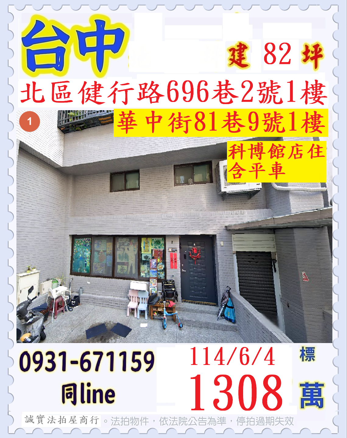 台中市北區健行路696巷2號1樓.中華街81巷9號1樓