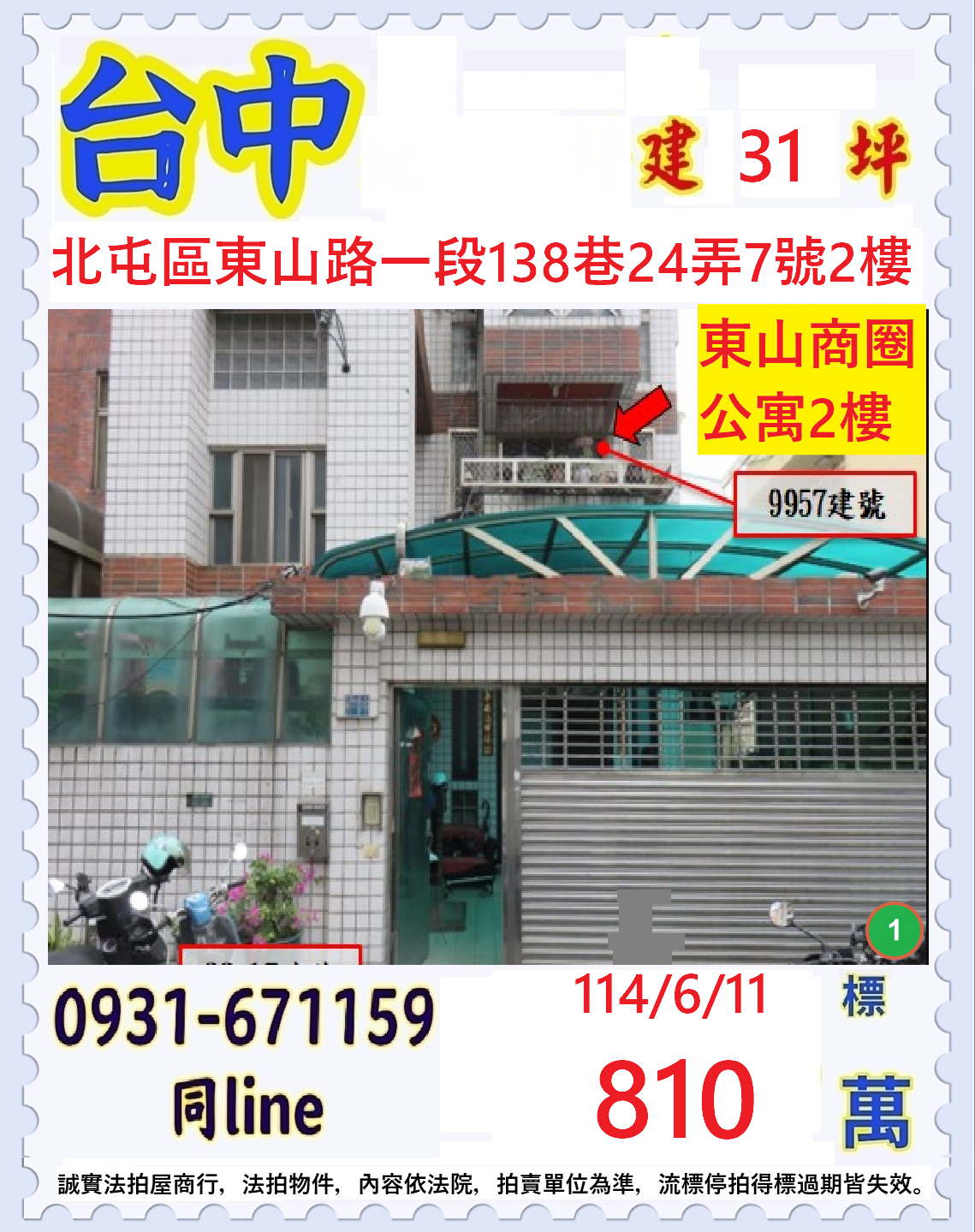 張經理推薦/台中市北屯東山路一段(東山商圈二樓公寓)