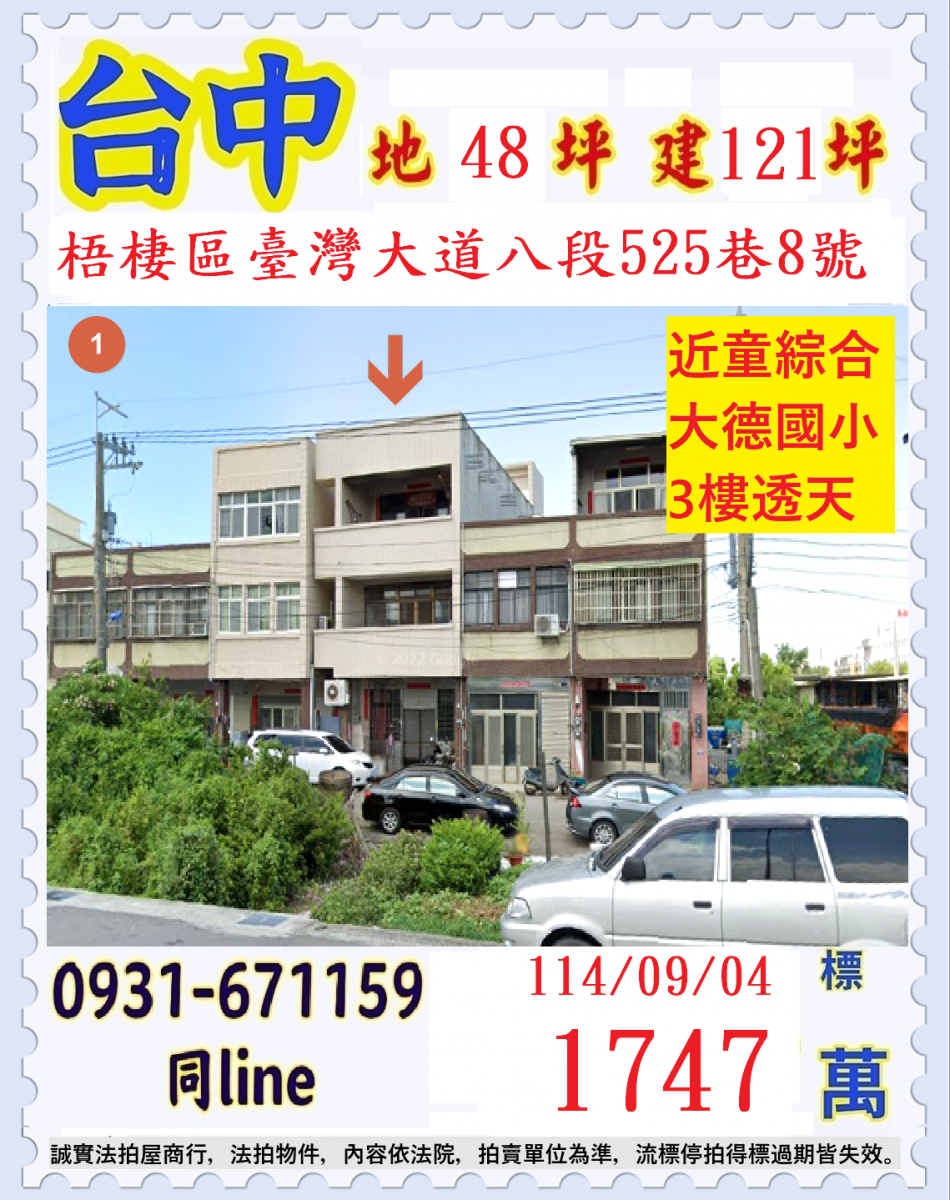 張經理推薦/台中市梧棲區台灣大道(童綜合大德國小三樓透天)