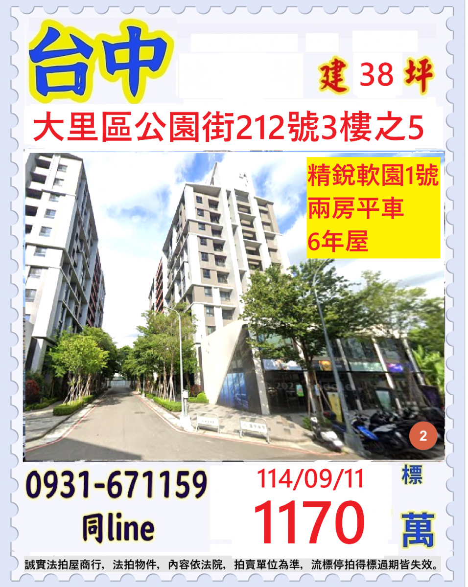張經理推薦/台中市大里區公園街(精銳阮員1號二房平車