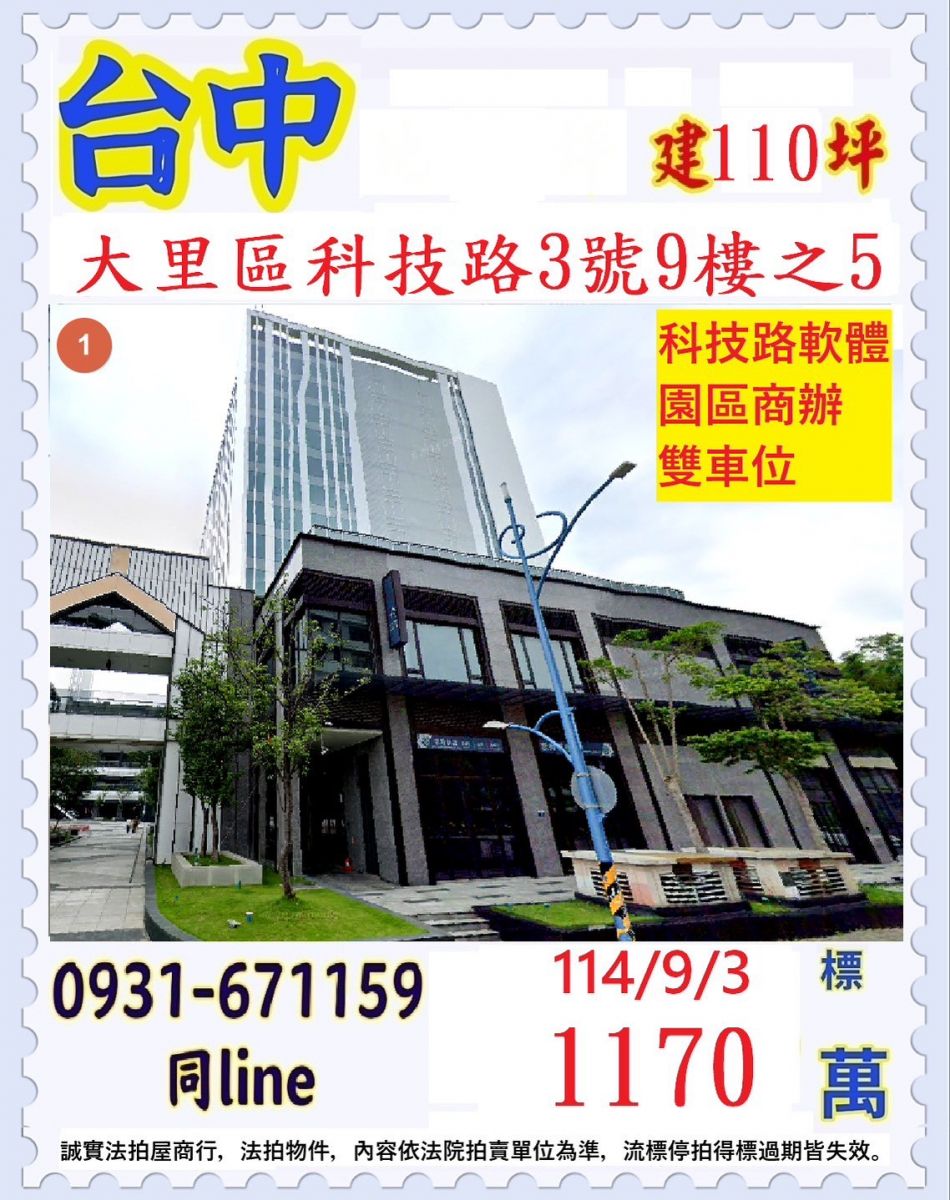 張經理推薦/台中市大里區(科技路軟體園區商辦雙車位)