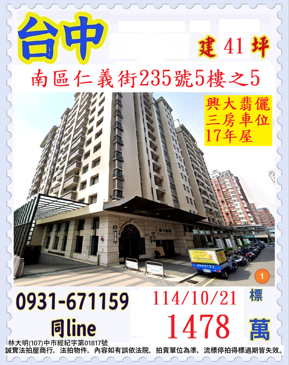 張經理推薦/台中市南區仁義街(興大翡儷三房出為17年)