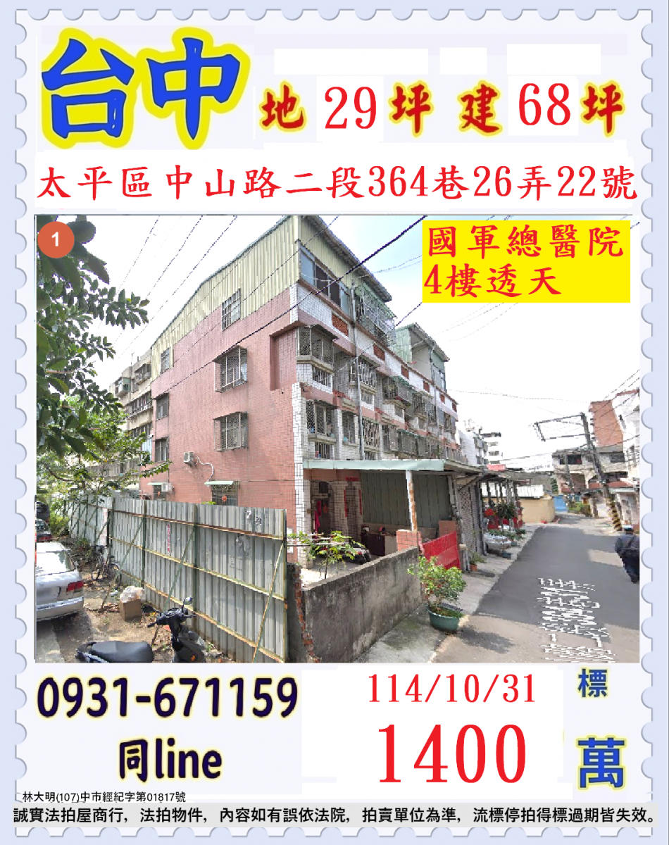張經理推薦/台中市太平區中山路二段(國軍醫院四樓透天)