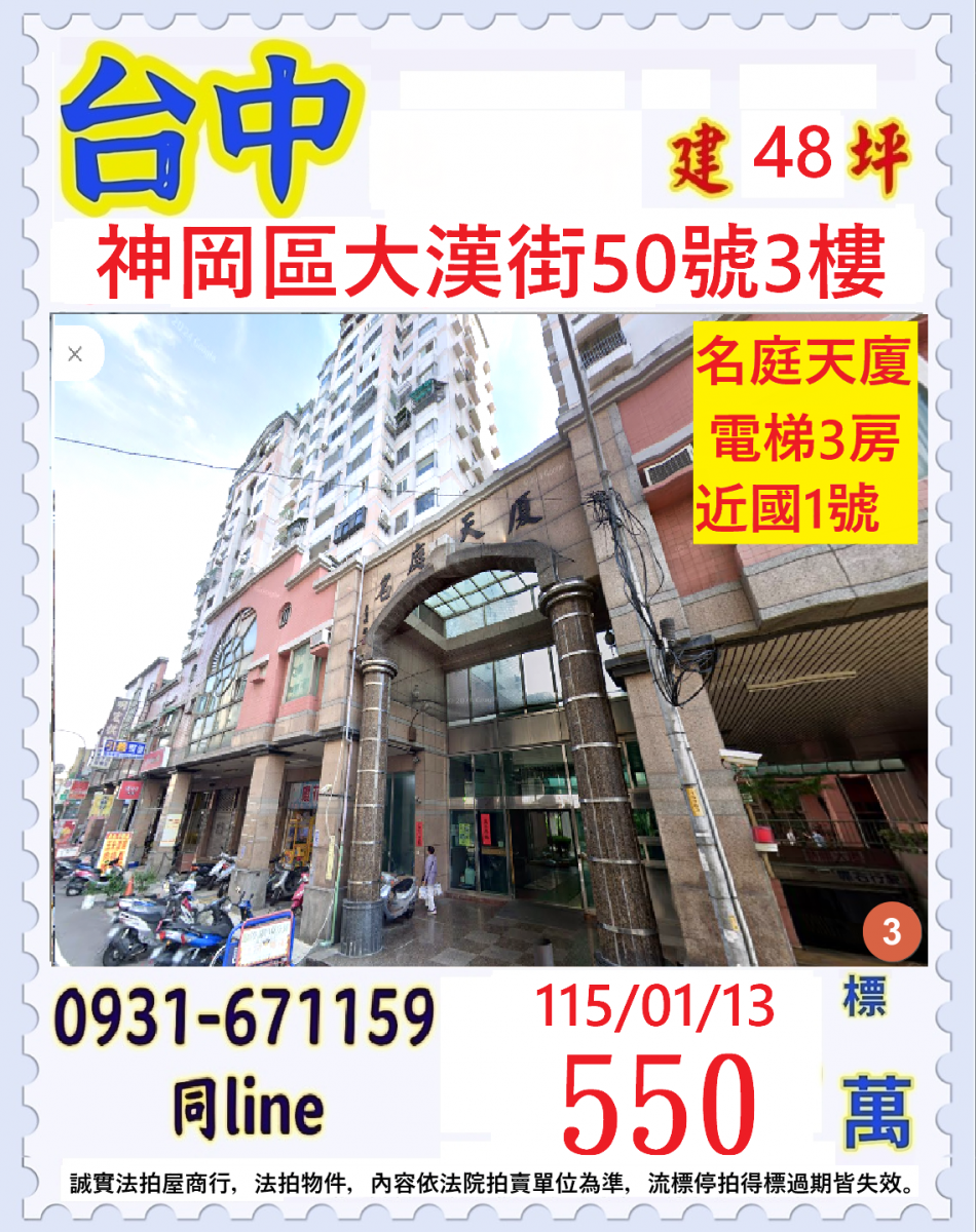 張經理推薦/台中市神岡區大漢街(名廷天廈電梯三房)