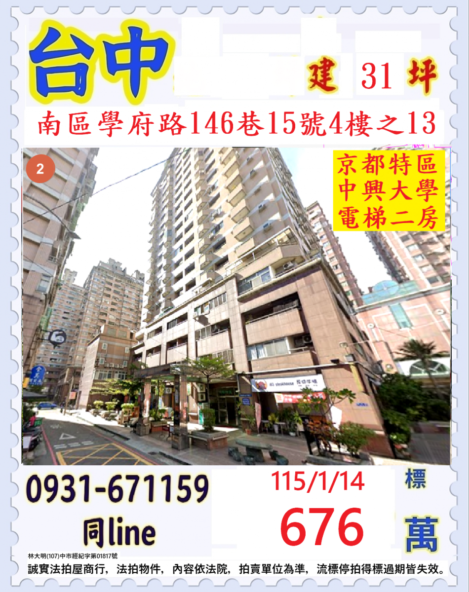 張經理推薦/台中市南區學府路(京都特區中大學電梯二房)