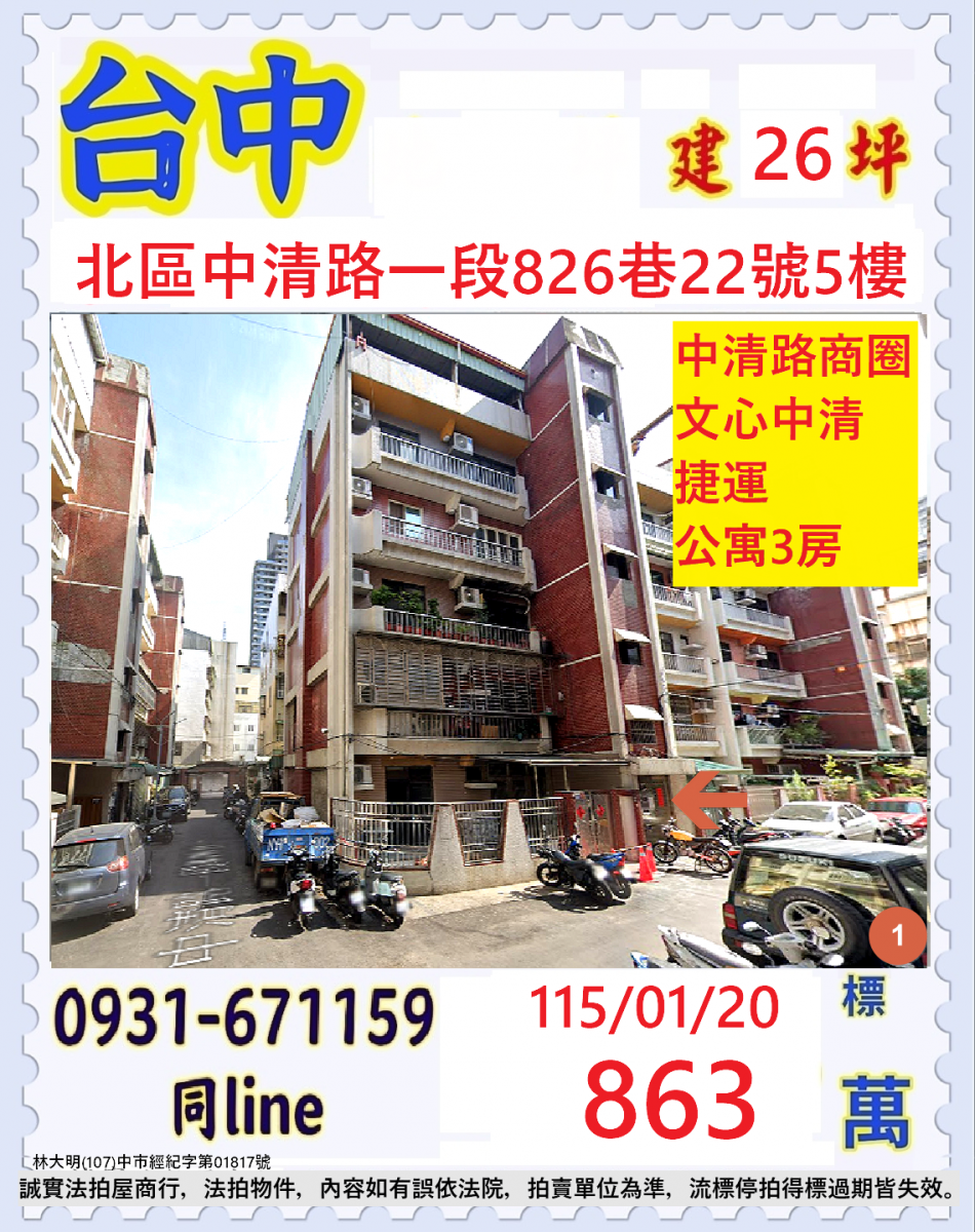 張經理推薦/台中市北區中清路一段(文心中清捷運健康公寓三房)