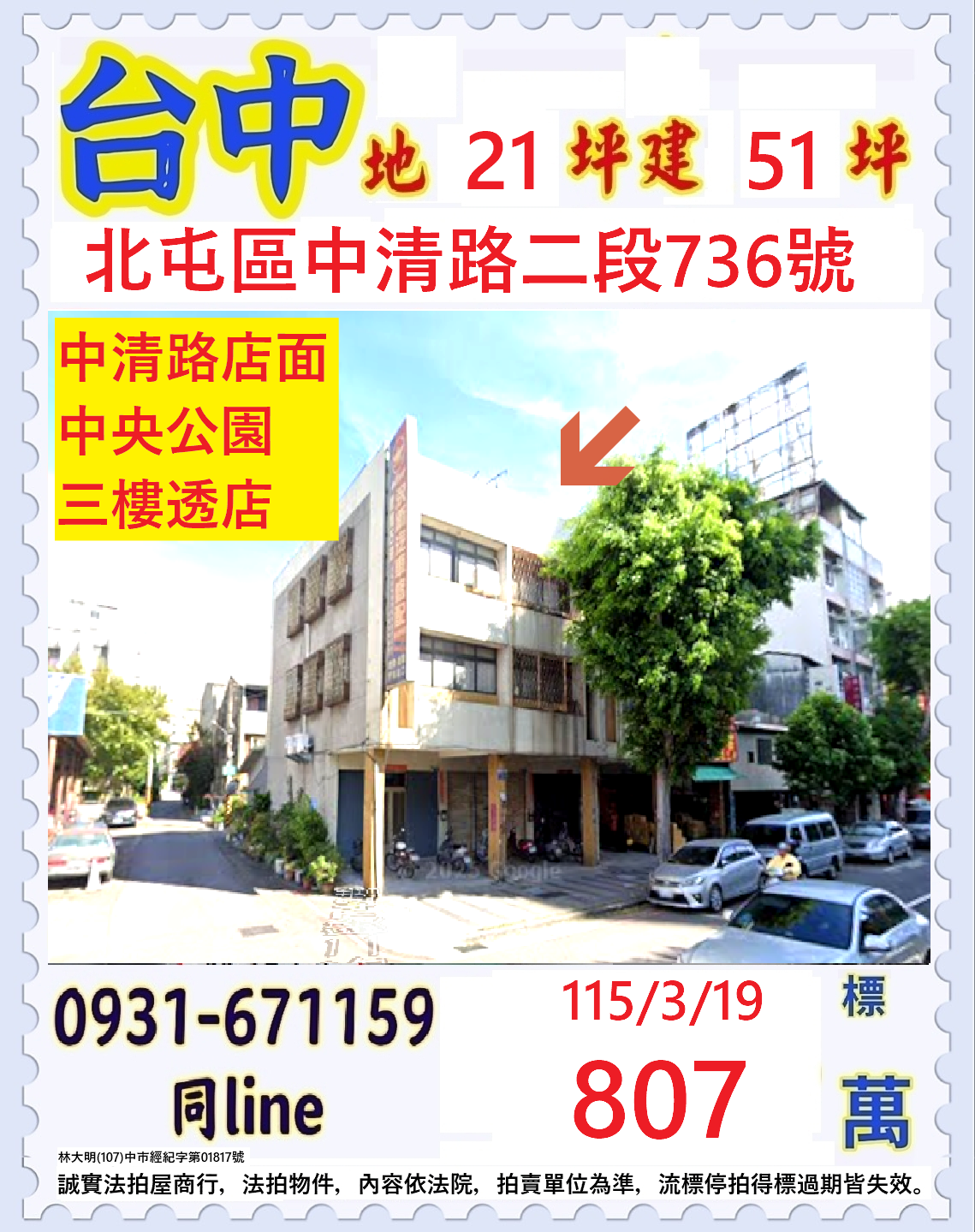 首頁 | 張經理推薦/台中市北屯區中清路二段(正中清路臨路三樓透店面)