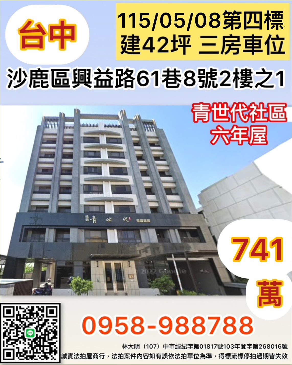 杜姐幫你成家台中沙鹿區青世代社區三房車位