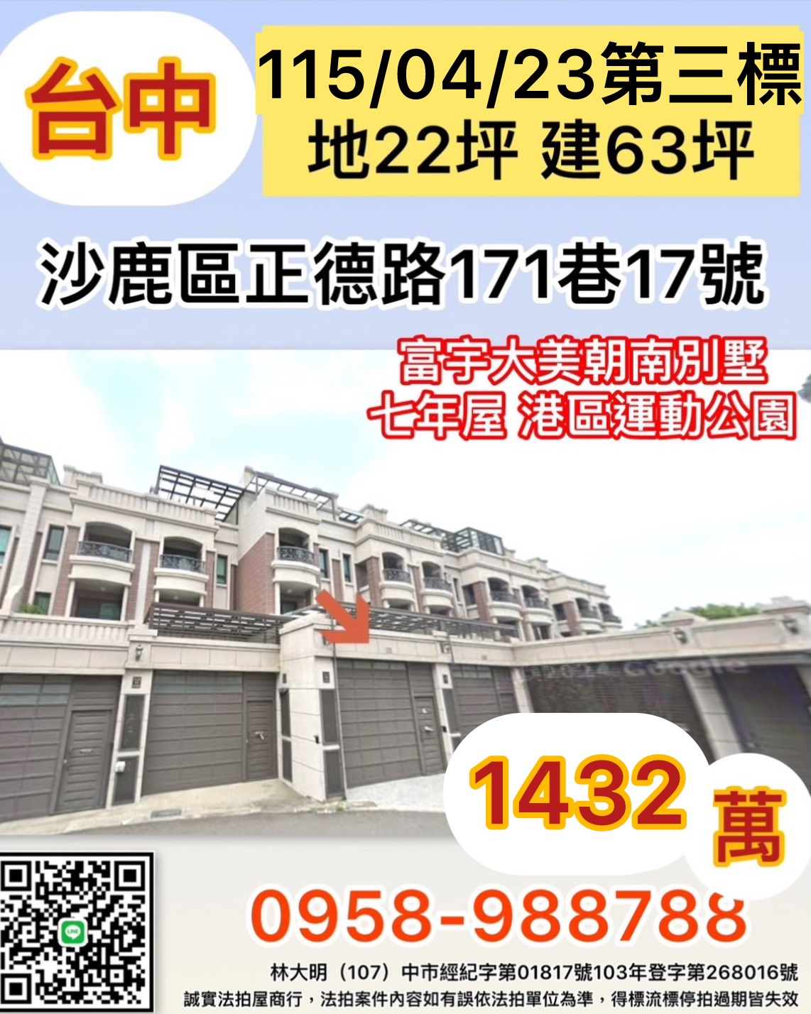 杜姐助你輕鬆成家台中沙鹿區富宇大美朝南別墅