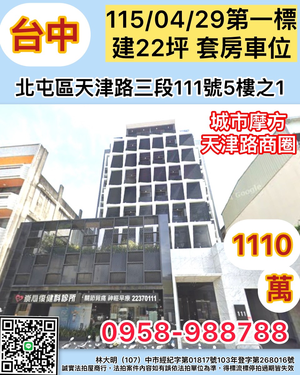 杜姐助你輕鬆成家台中北屯區天津路城市摩方套房車位