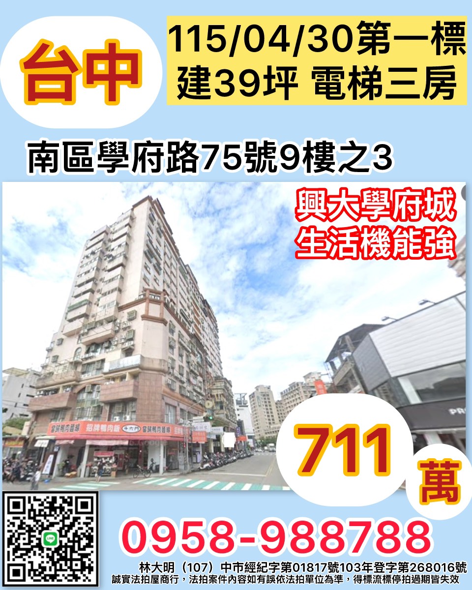 首頁 | 杜姐助你輕鬆成家台中南區學府路興大學府城電梯三房