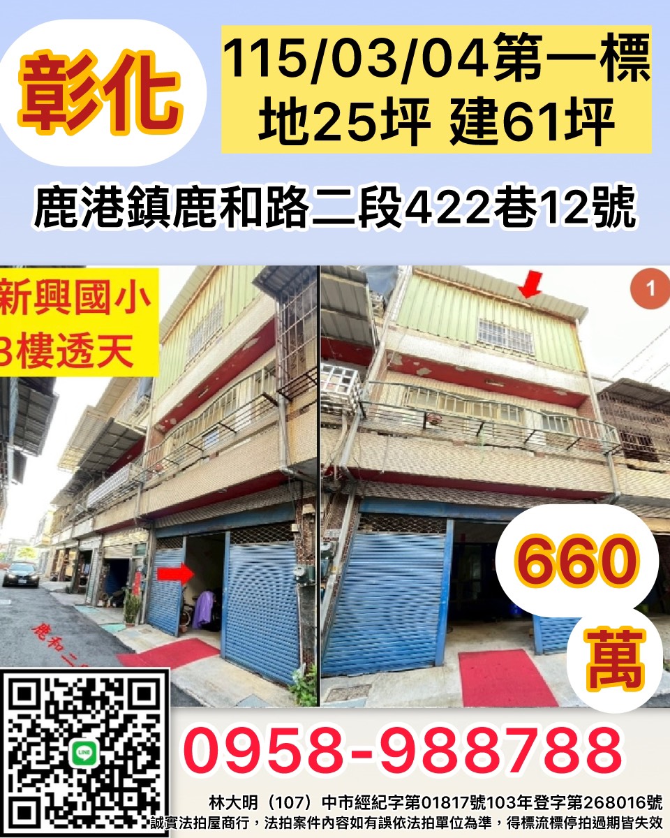 杜姐助你輕鬆成家彰化鹿港鎮新興國小三樓透天