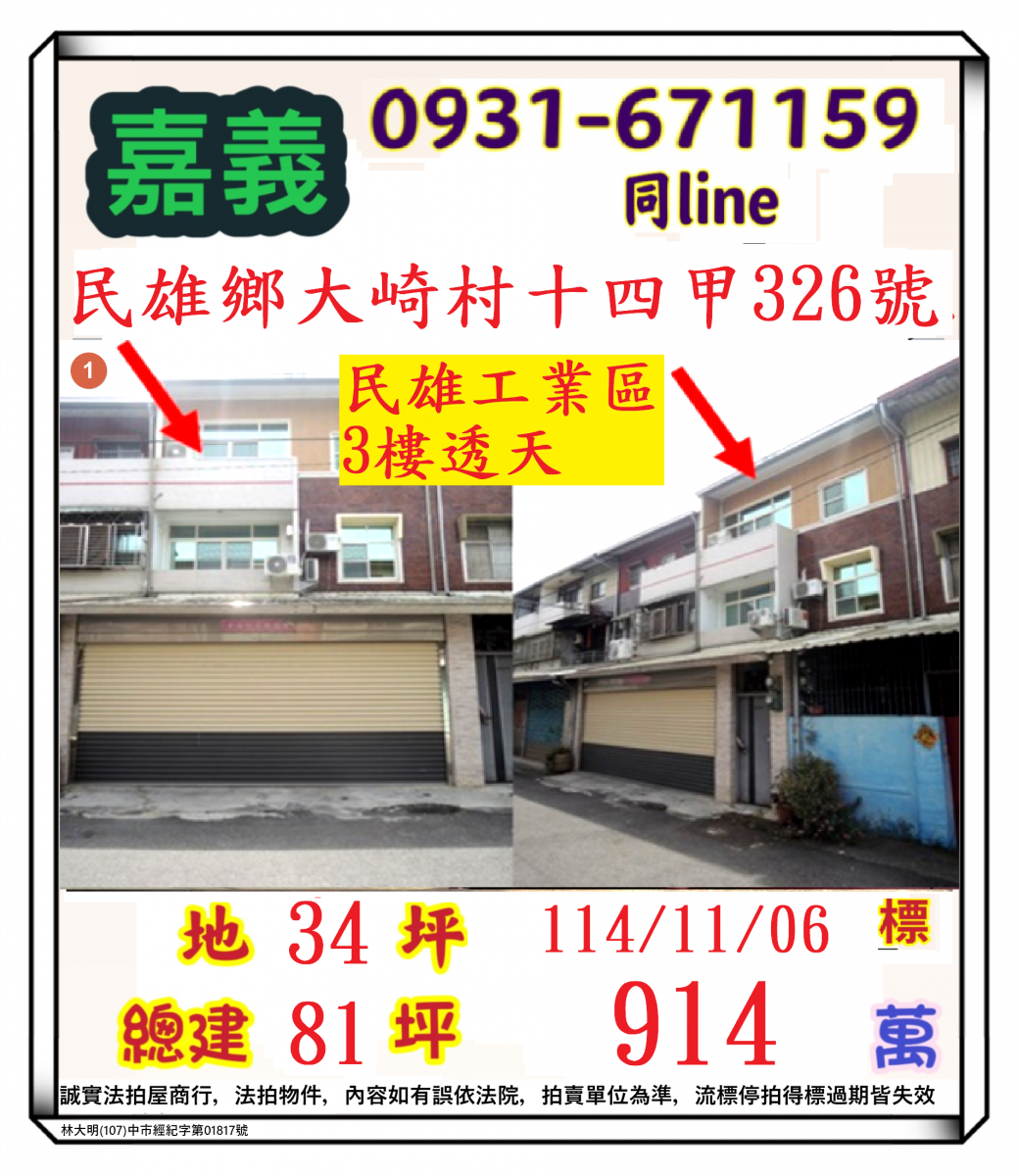 張經理推薦/嘉義縣民雄鄉大崎村十四甲(民雄工業區3樓透天)